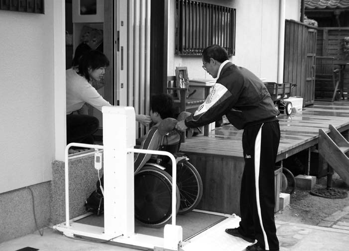 | Y君は、晴れた日には 車椅子のまま居間のサッシから外へ出て勝手口まで回遊し、