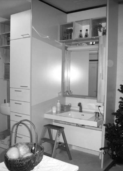 DKの片隅に洗面化粧台を置くことになりました。 |