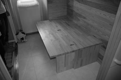 | 脱衣室の手前にある既存のトイレスペースは、便器のかさ上げとドアのとり替えをしました。